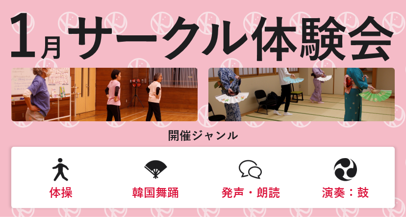 ▼【講座情報】生涯学習団体1日公開講座事業「1月サークル体験会」募集開始
