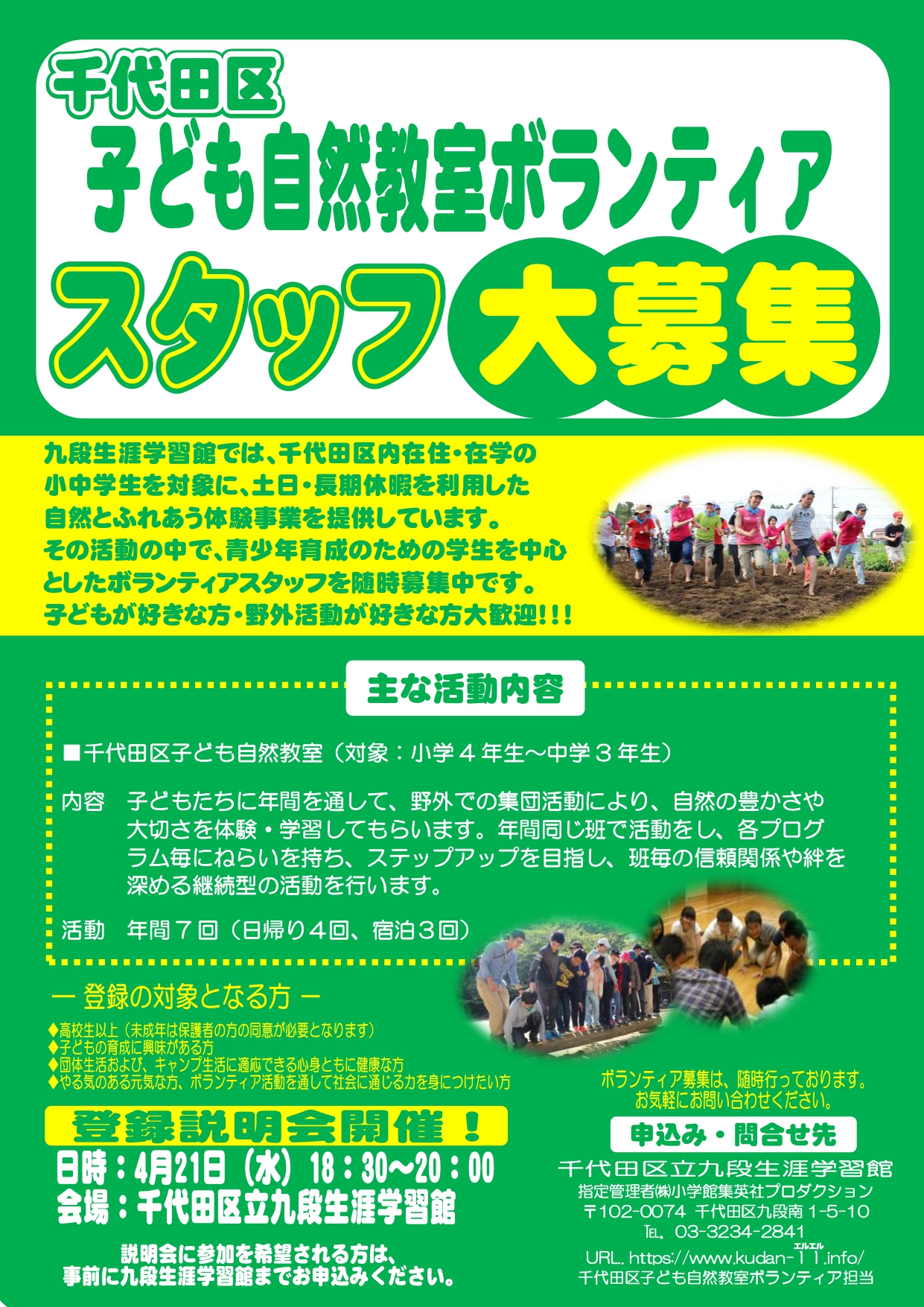 令和3年度千代田区子ども自然教室 ボランティア募集