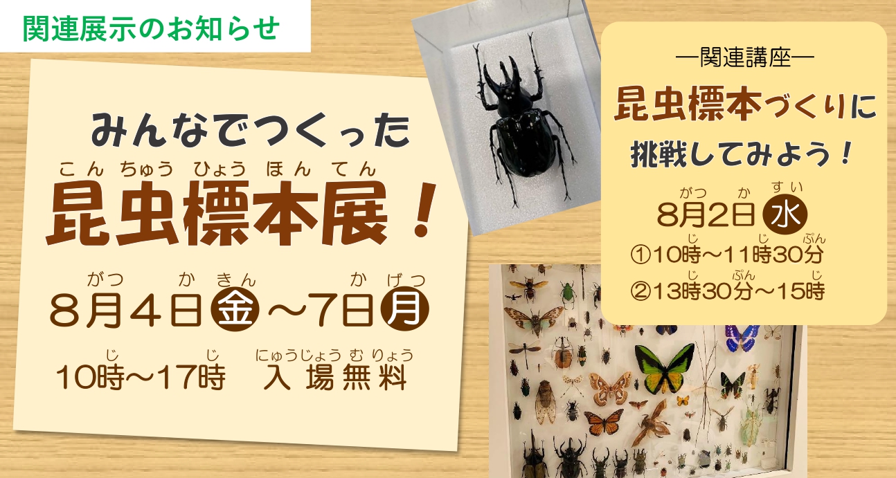 ジュニアカレッジ関連展示「みんなでつくった昆虫標本展!」