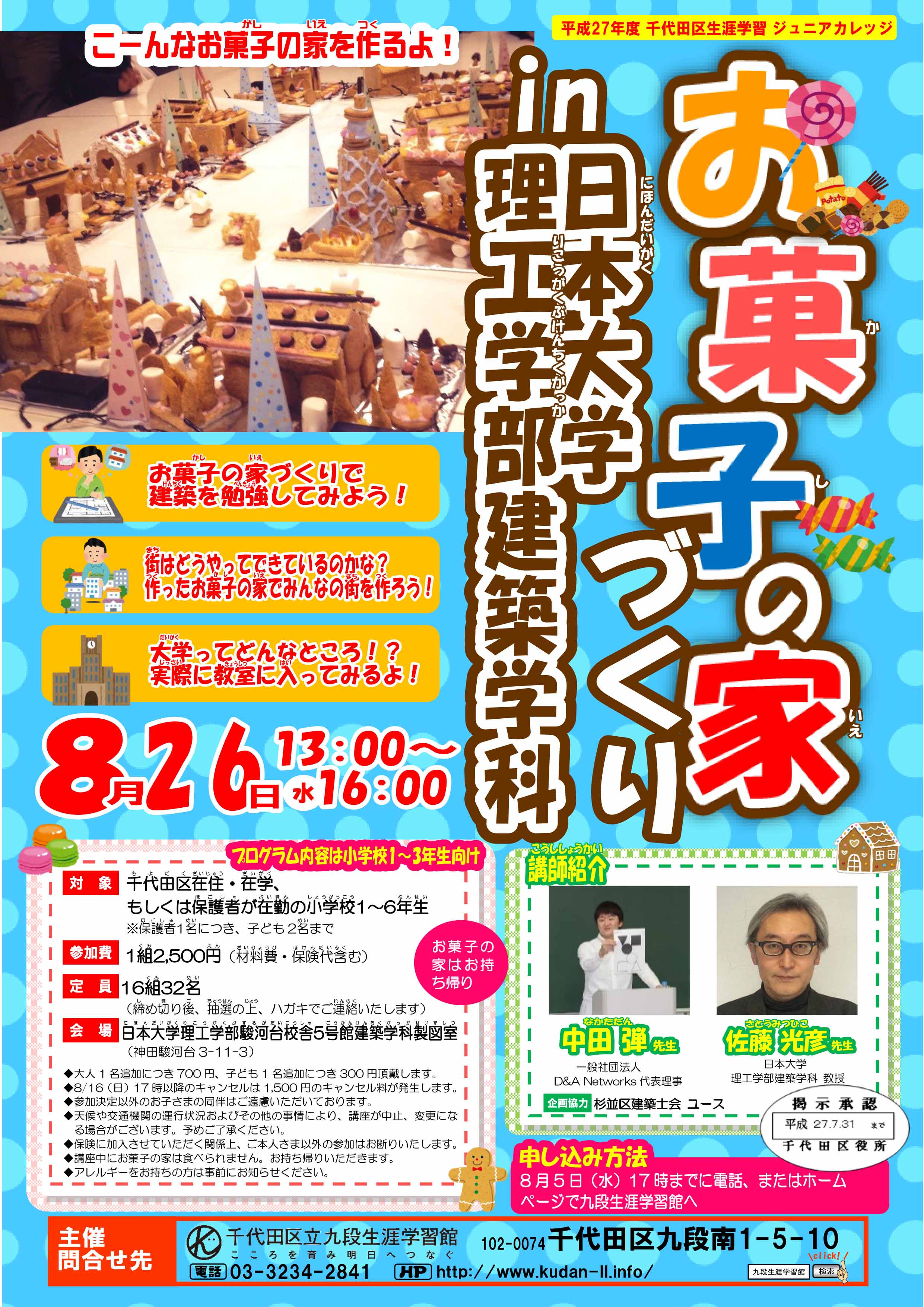 平成27年度 千代田区生涯学習 ジュニアカレッジ「お菓子の家づくりin日本大学理工学部建築学科」
