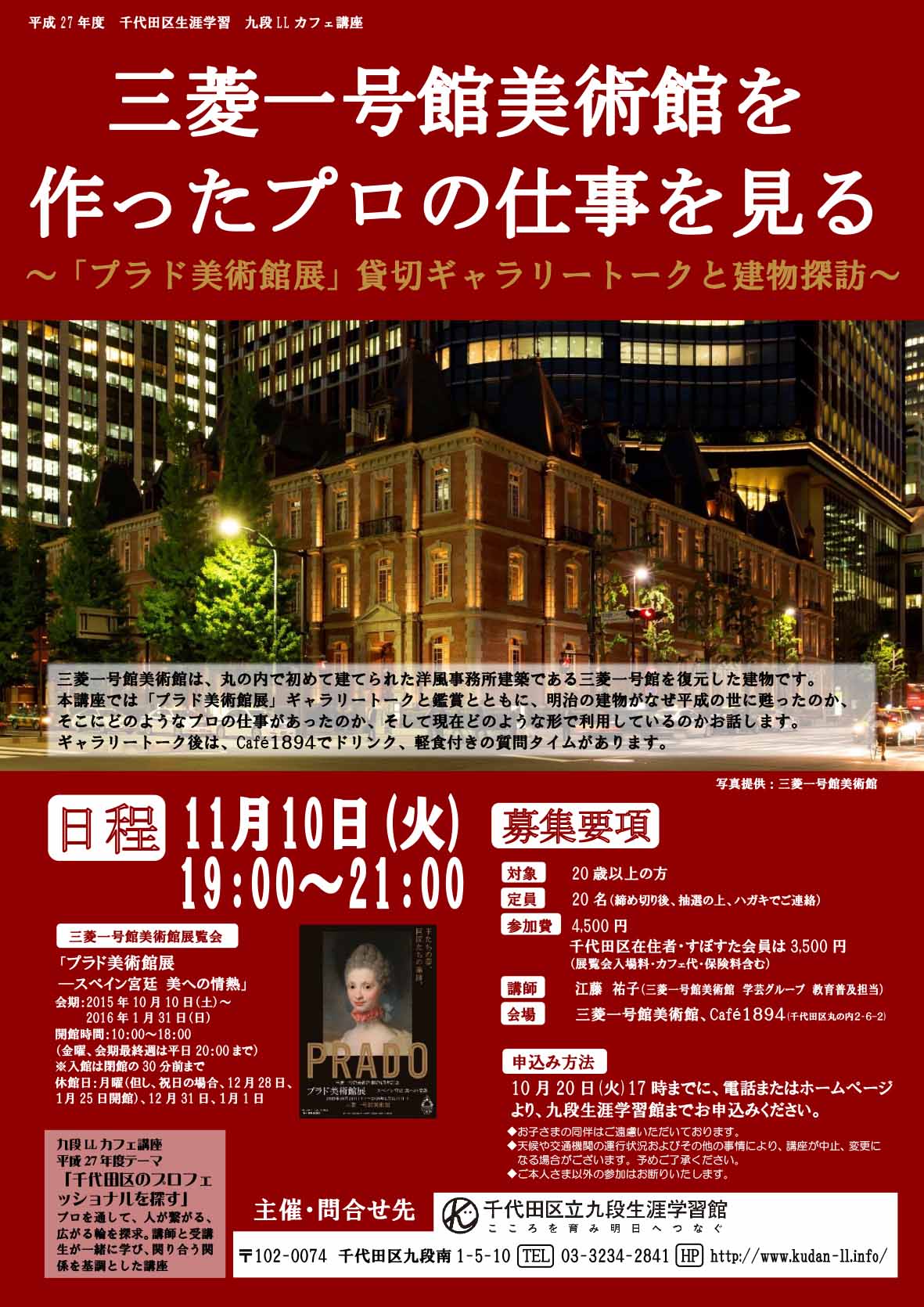平成27年度 千代田区生涯学習 九段LLカフェ講座「三菱一号館美術館を作ったプロの仕事を見る~「プラド美術館展」貸切ギャラリートークと建物探訪~」