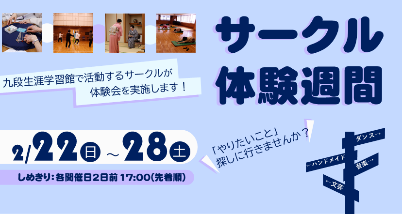 ▼生涯学習団体1日公開講座事業「サークル体験週間」開催