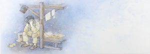 戦後76年が過ぎ、彼らが自身の体験を語ることは難しくなっています。本店では、実父の戦争・抑留体験を描いた漫画『凍りの掌 シベリア抑留記』(作・おざわゆき)と、抑留者の心の支えとなった実在の犬を描いた絵本『氷海のクロ』(文・神津良子 絵・北野美子)の原画を展示します。これらは、戦争の記憶が風化する中、戦争を体験していない世代の作家が、抑留者の体験を後世に伝えたいという想いから生み出した作品です。