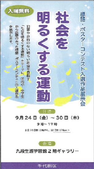 犯罪や非行のない明るい社会を目指す「社会を明るくする運動」をもっと身近に感じてもらうため、区内の小・中学生から募集した標語・ポスターコンテストの入選作品を展示します。