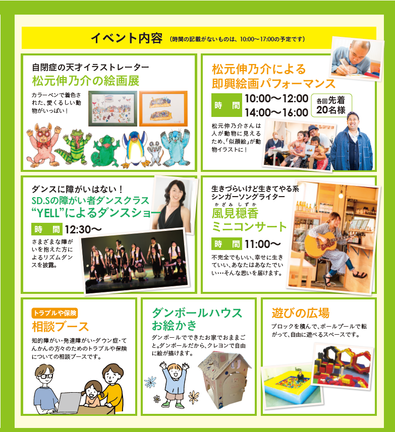 昨年に引き続き千代田区からの後援をいただき、障がいのある方もない方も楽しめる空間と時間を提供するイベントになっております。