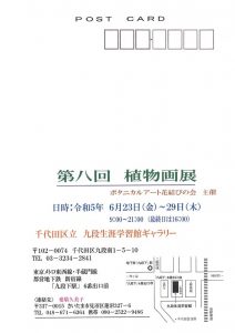 コロナ禍のため長らく作品展をすることができませんでしたが、このたびようやく四年振りで八回目の植物画展を開催する運びとなりました。