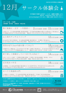 令和7年度 生涯学習団体1日公開講座事業「12月サークル体験会」