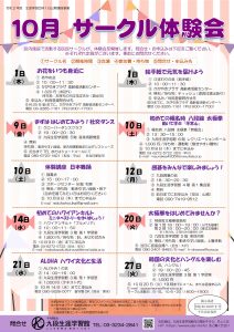 令和7年度 生涯学習団体1日公開講座事業「10月サークル体験会」
