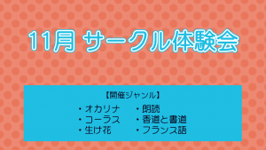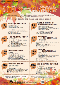 令和7年度 生涯学習団体1日公開講座事業「11月サークル体験会」