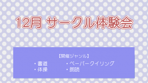 令和6年度 生涯学習団体1日公開講座事業「1月サークル体験会」
