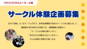 令和7年度 生涯学習団体1日公開講座事業 サークル体験企画募集と説明会