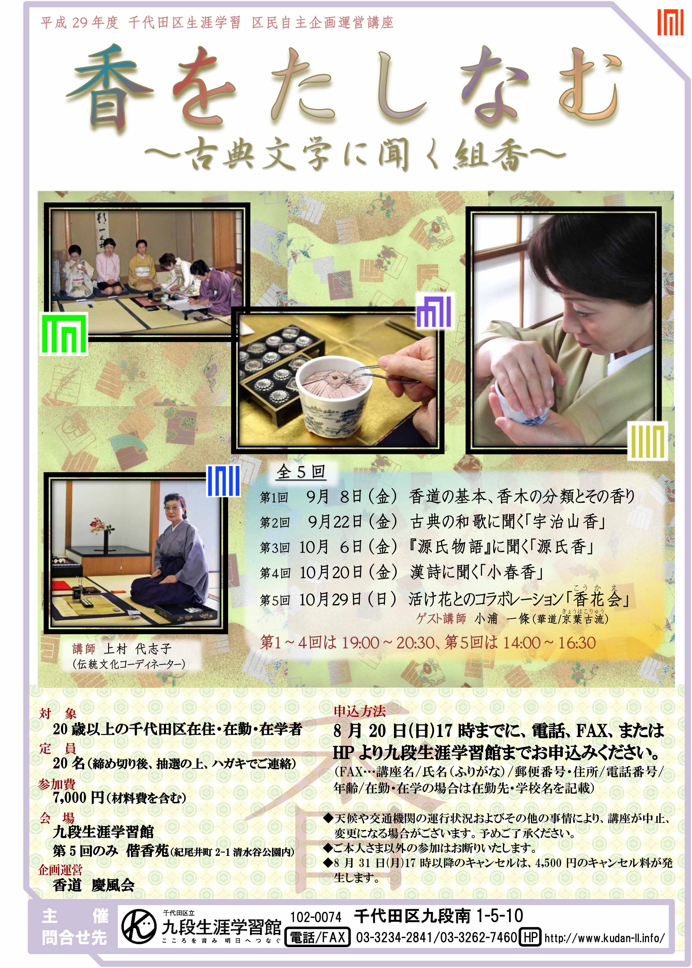 平成29年度 千代田区生涯学習 区民自主企画運営講座 香をたしなむ ~古典文学に聞く組香~