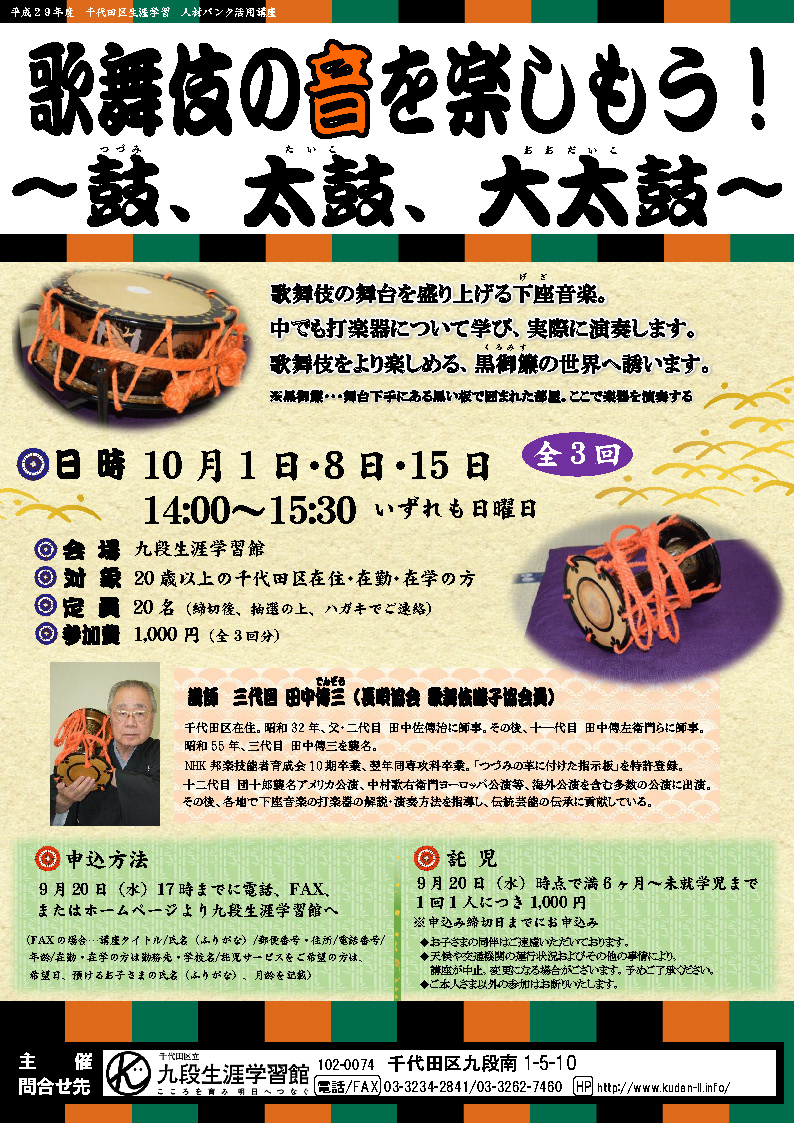 平成29年度 千代田区生涯学習人材バンク活用講座「歌舞伎の音を楽しもう!~鼓、太鼓、大太鼓~」