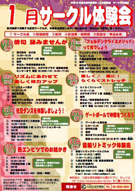 平成30年1月サークル体験会 参加者募集のお知らせ