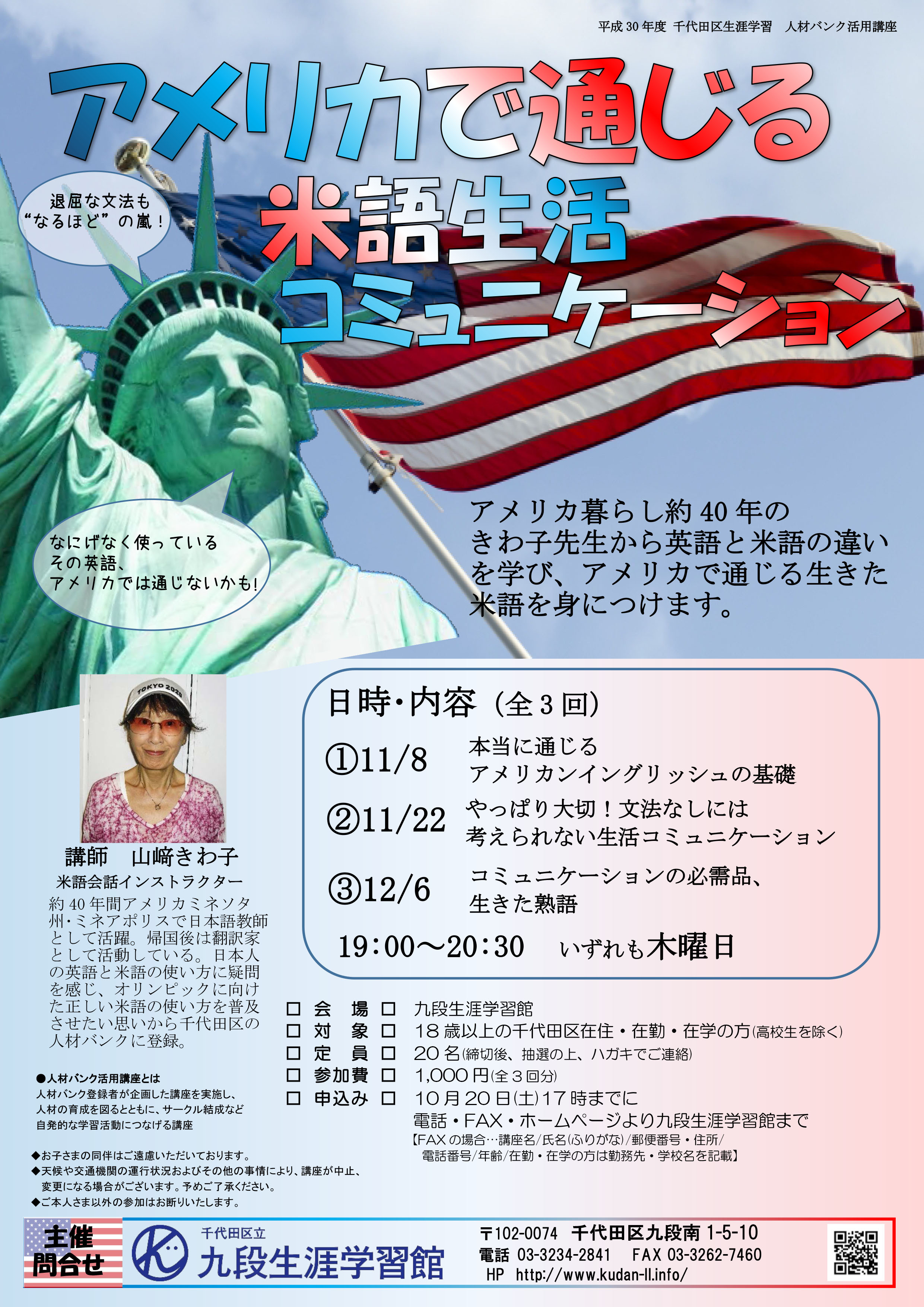 平成30年度 千代田区生涯学習 人材バンク活用講座「アメリカで通じる米語生活コミュニケーション」