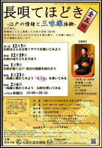 平成30年度 千代田区生涯学習 区民自主企画運営講座 「長唄てほどき -江戸の情緒と三味線体験-」