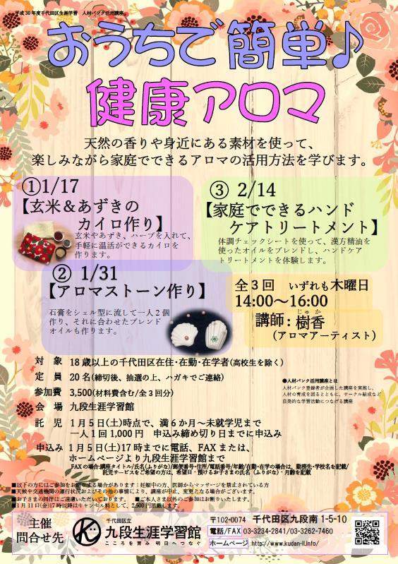 平成30年度 千代田区生涯学習 人材バンク活用講座「おうちで簡単♪健康アロマ」