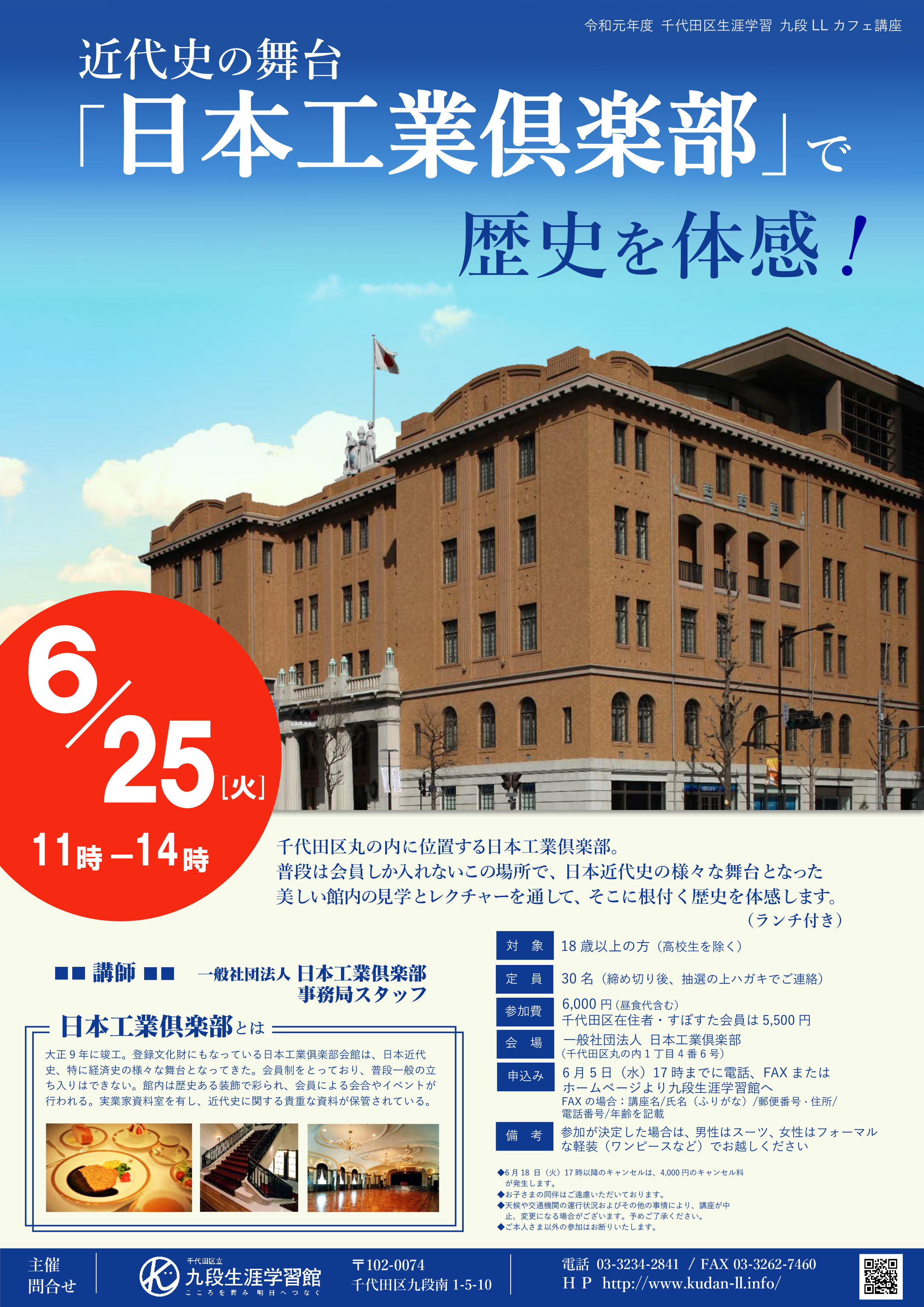 令和元年度 千代田区生涯学習 九段LLカフェ講座「近代史の舞台「日本工業倶楽部」で歴史を体感!」