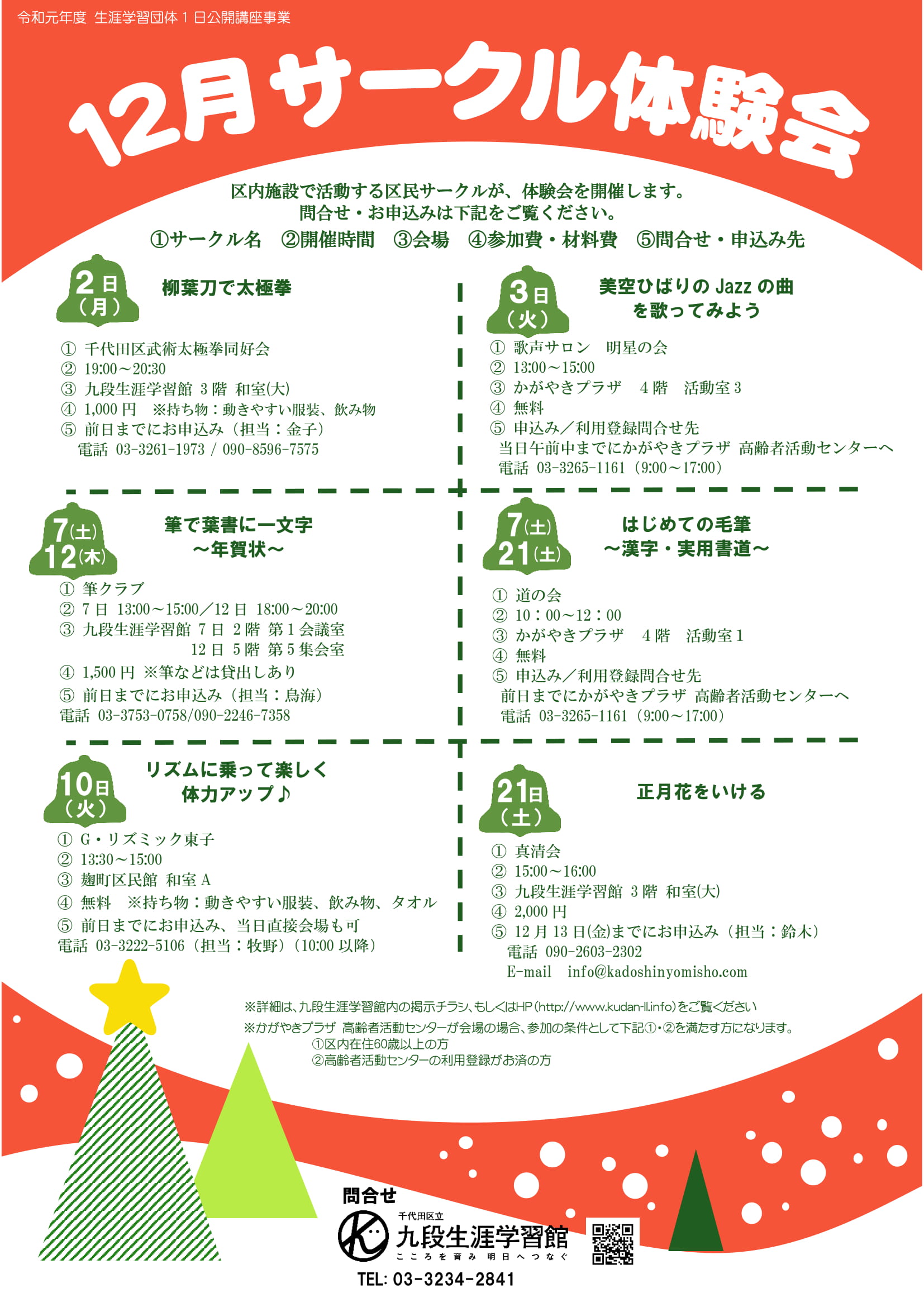 令和元年12月サークル体験会 参加者募集のお知らせ