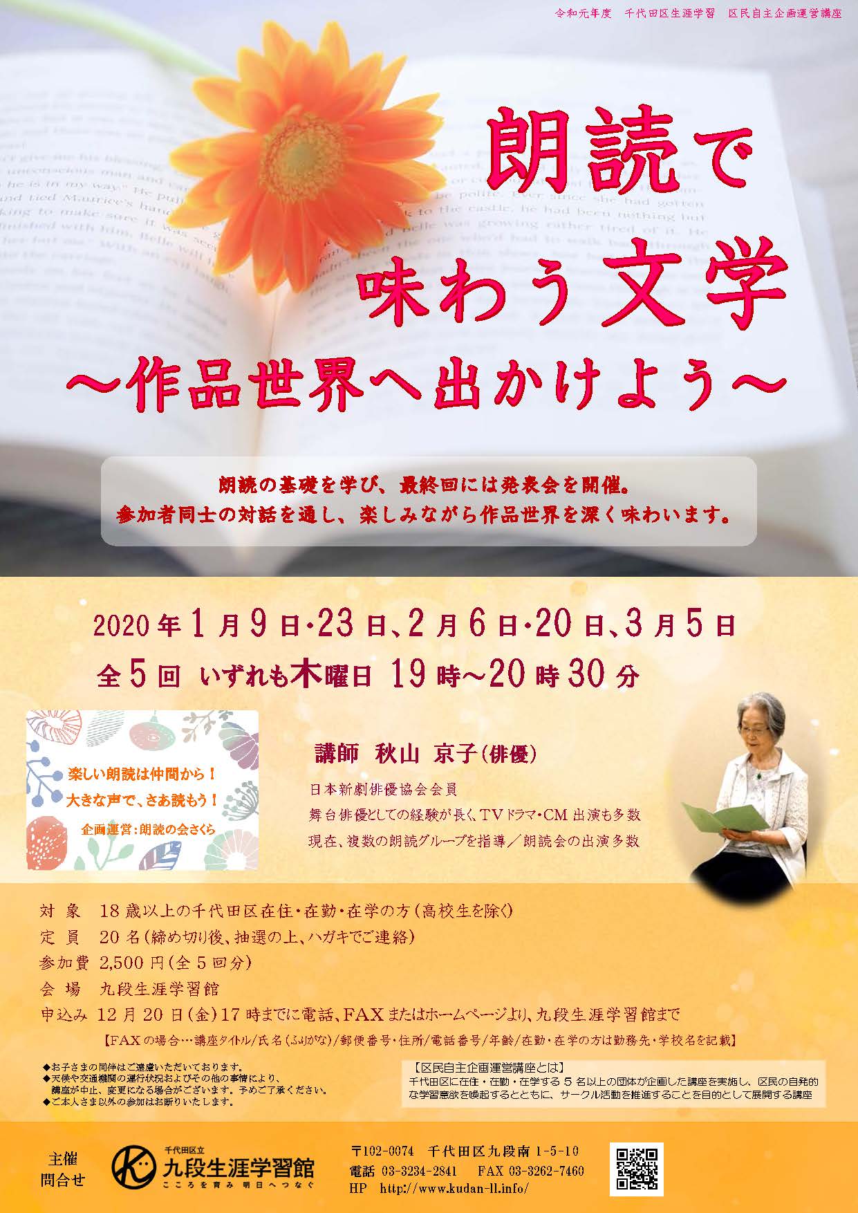 【開催中止】令和元年度 千代田区生涯学習 区民自主企画運営講座「朗読で味わう文学 ~作品世界へ出かけよう~」