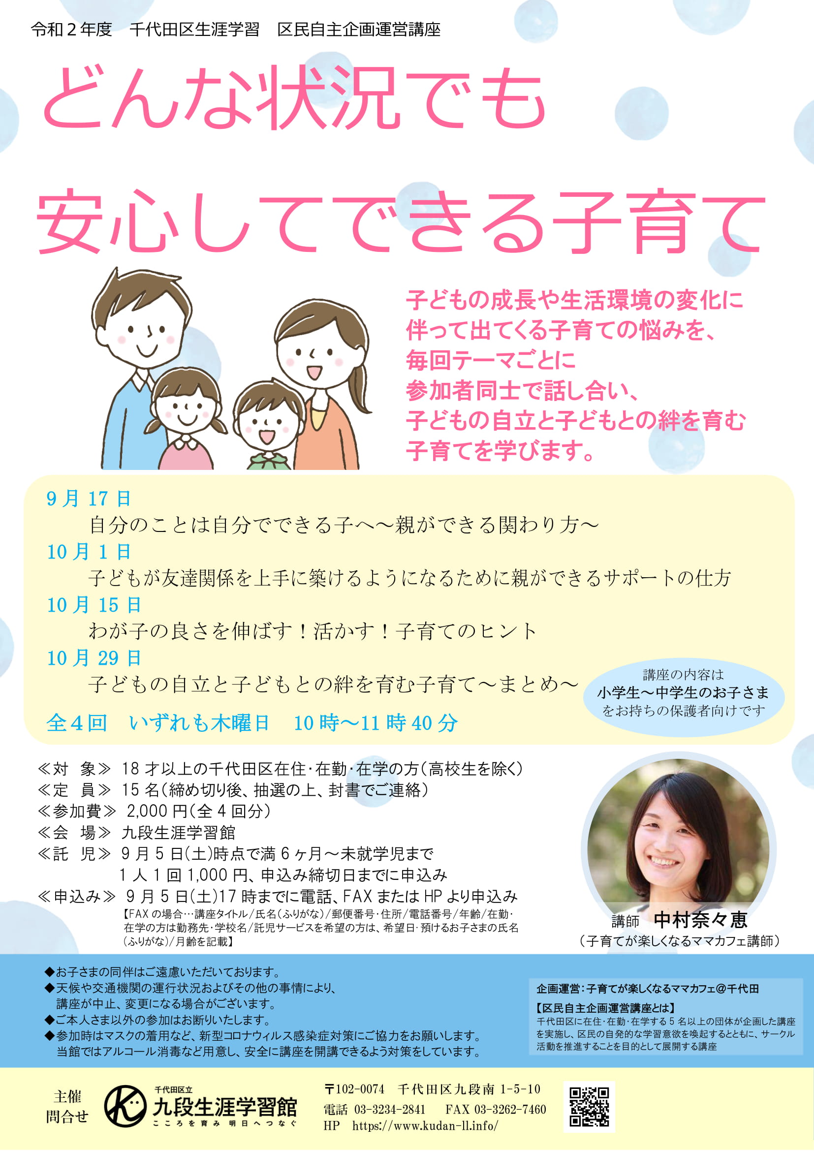 令和2年度 千代田区生涯学習 区民自主企画運営講座「どんな状況でも安心してできる子育て」