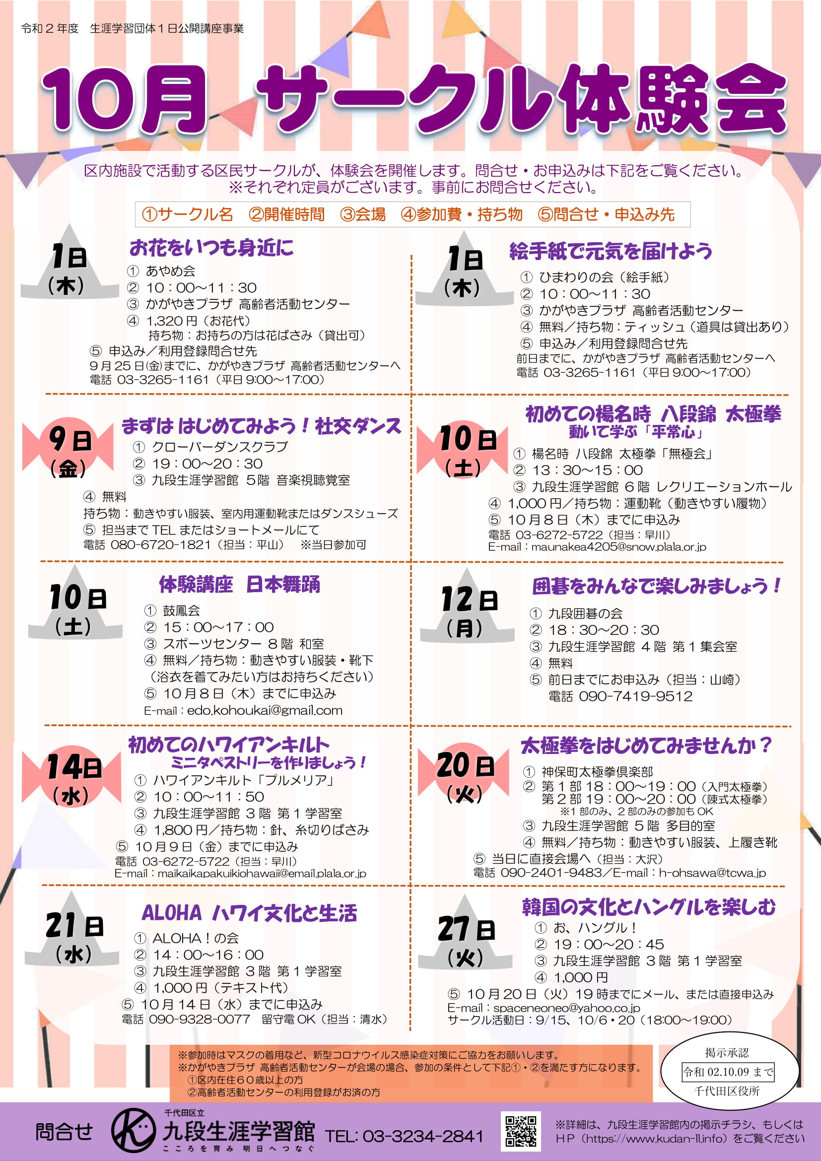 令和2年度生涯学習団体1日公開講座事業「10月サークル体験会」