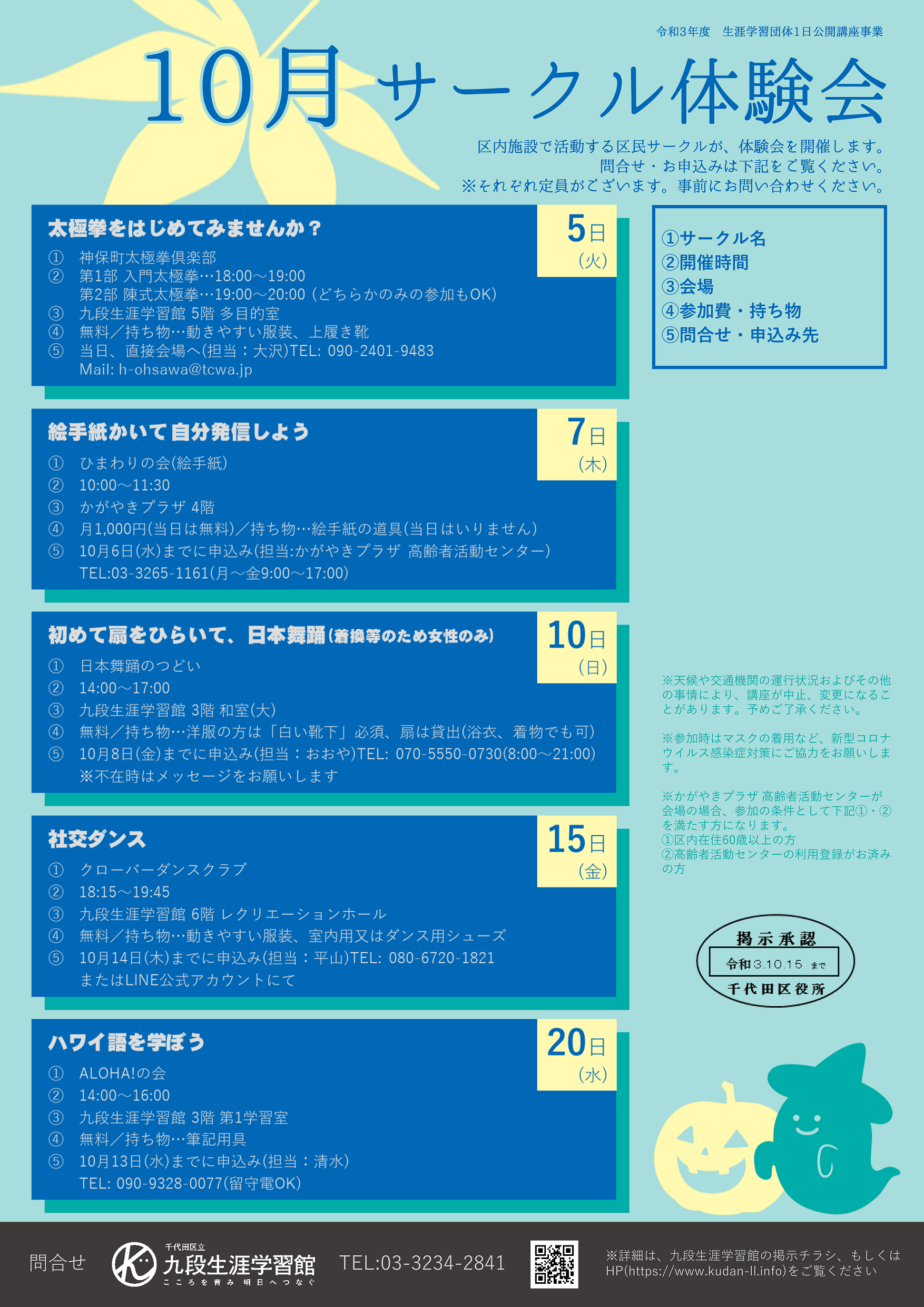 令和3年度 生涯学習団体1日公開講座事業「10月サークル体験会」