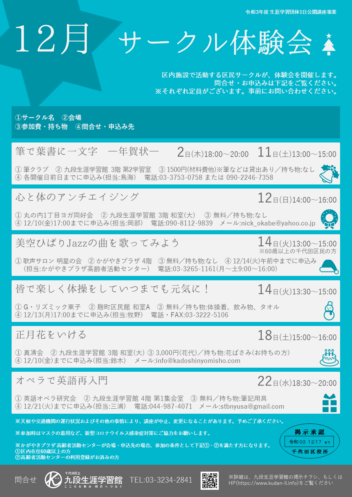 九段生涯学習館≫講座・イベント情報