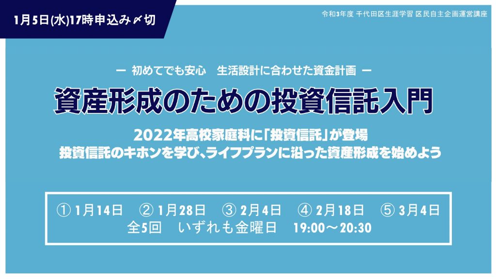 令和3年度 千代田区生涯学習 区民自主企画運営講座「資産形成のための投資信託入門 -初めてでも安心 生活設計に合わせた資金計画-」