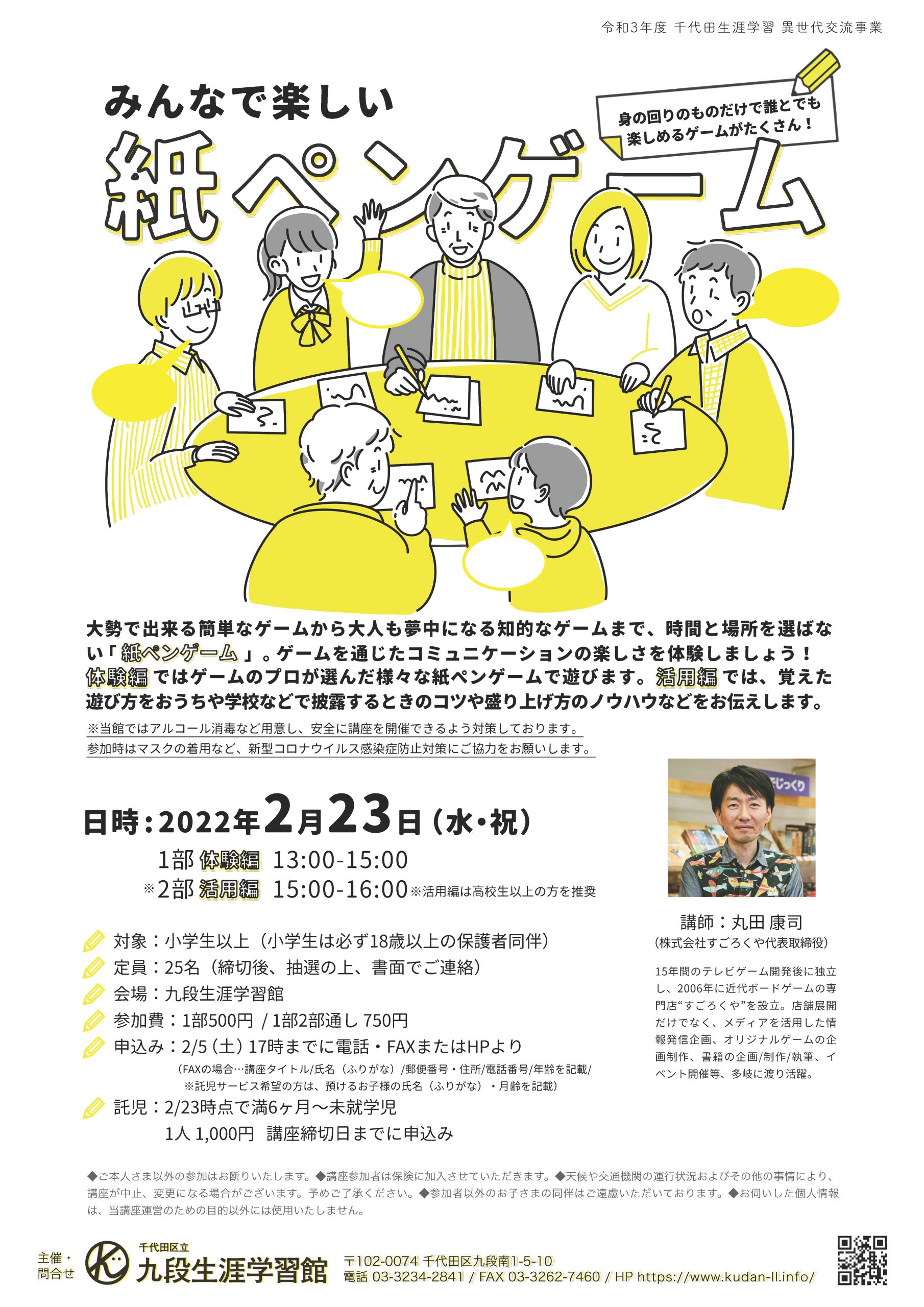 令和3年度 千代田区生涯学習 異世代交流事業「みんなで楽しい紙ペンゲーム」