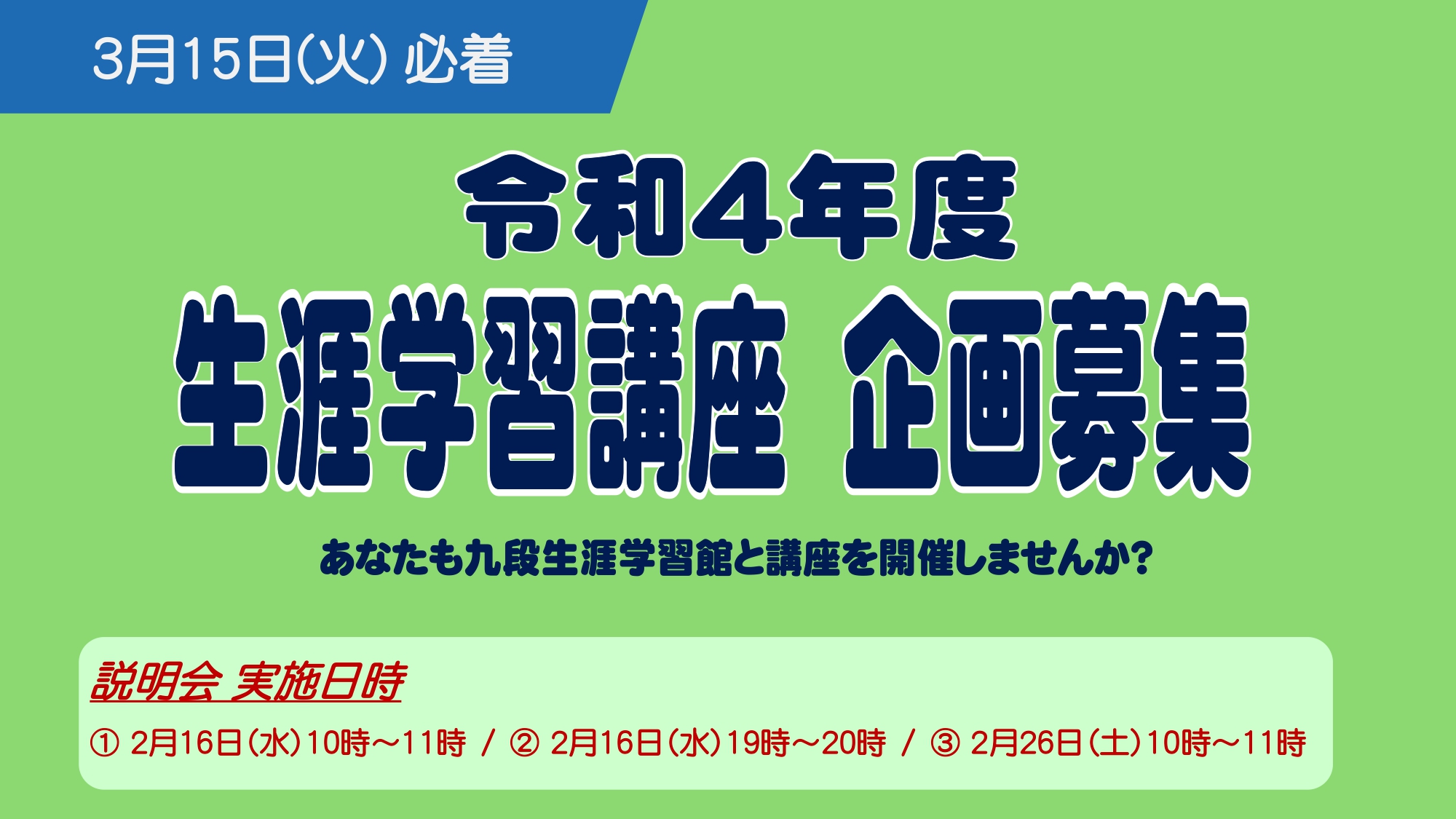 令和4年度に九段生涯学習館で開催する生涯学習講座の企画を募集いたします。