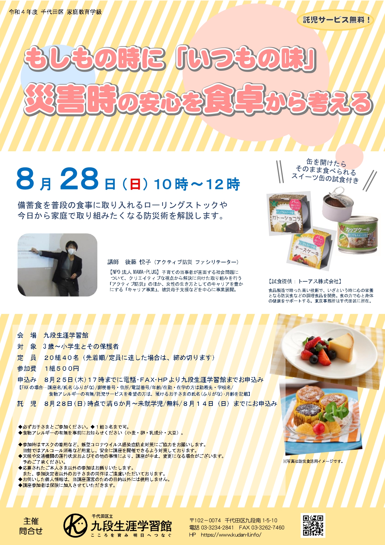 令和4年度 千代田区 家庭教育学級「もしもの時に『いつもの味』災害時の安心を食卓から考える」
