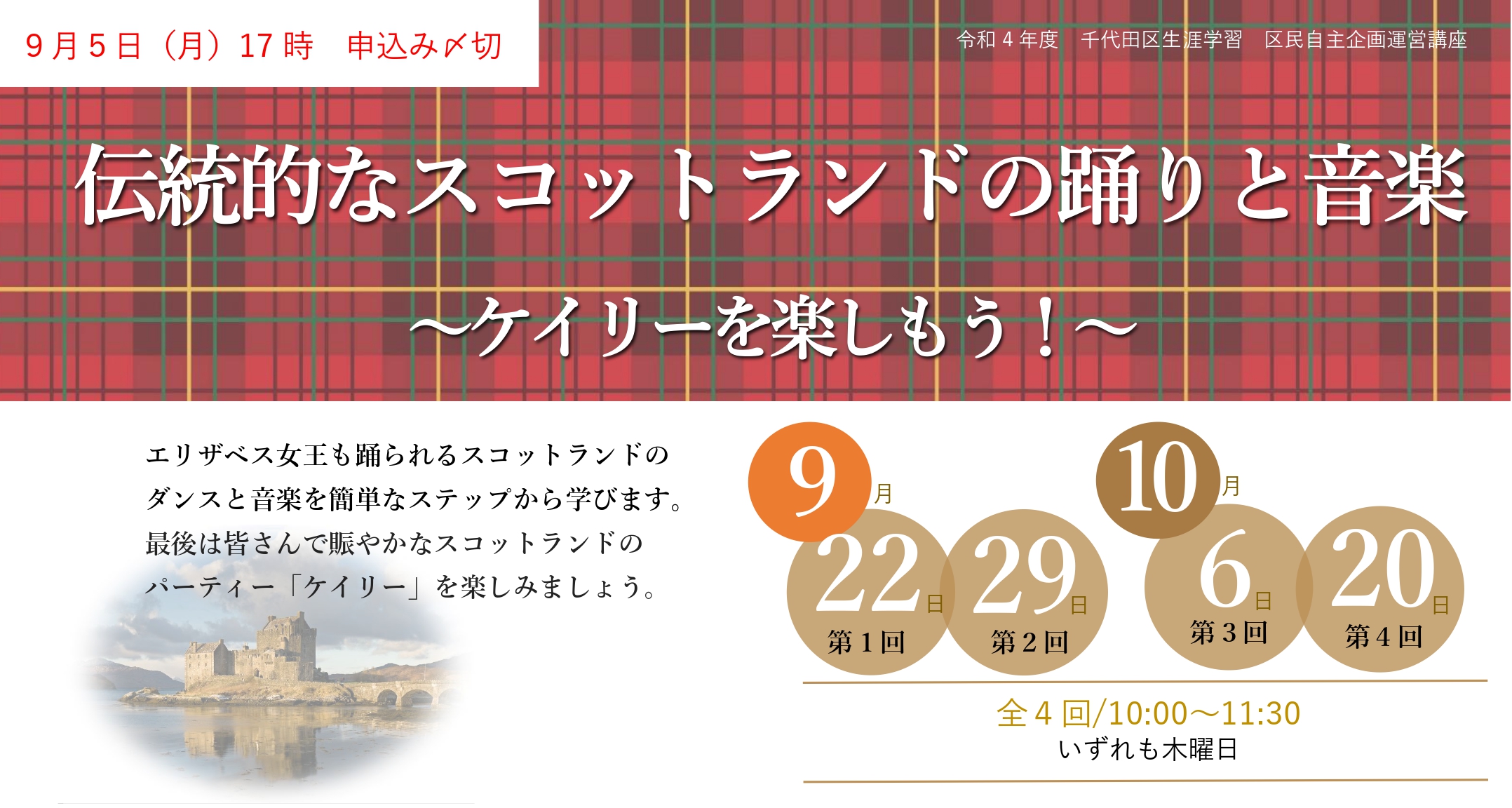 令和4年度 千代田区生涯学習 区民自主企画運営講座「伝統的なスコットランドの踊りと音楽~ケイリーを楽しもう!~」
