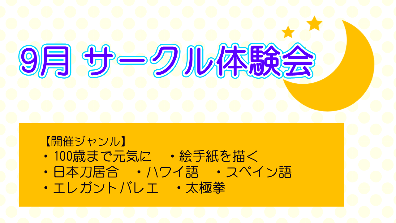 令和4年度 生涯学習団体1日公開講座事業「9月サークル体験会」