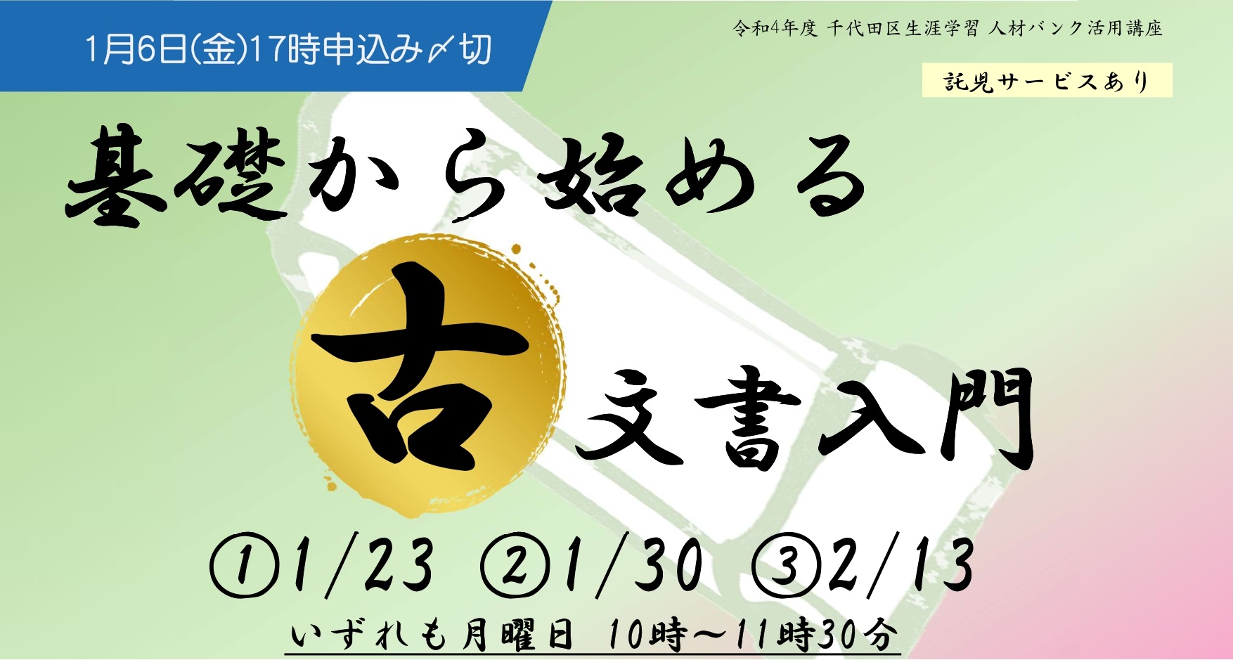 令和4年度 千代田区生涯学習 人材バンク活用講座「基礎から始める古文書入門」