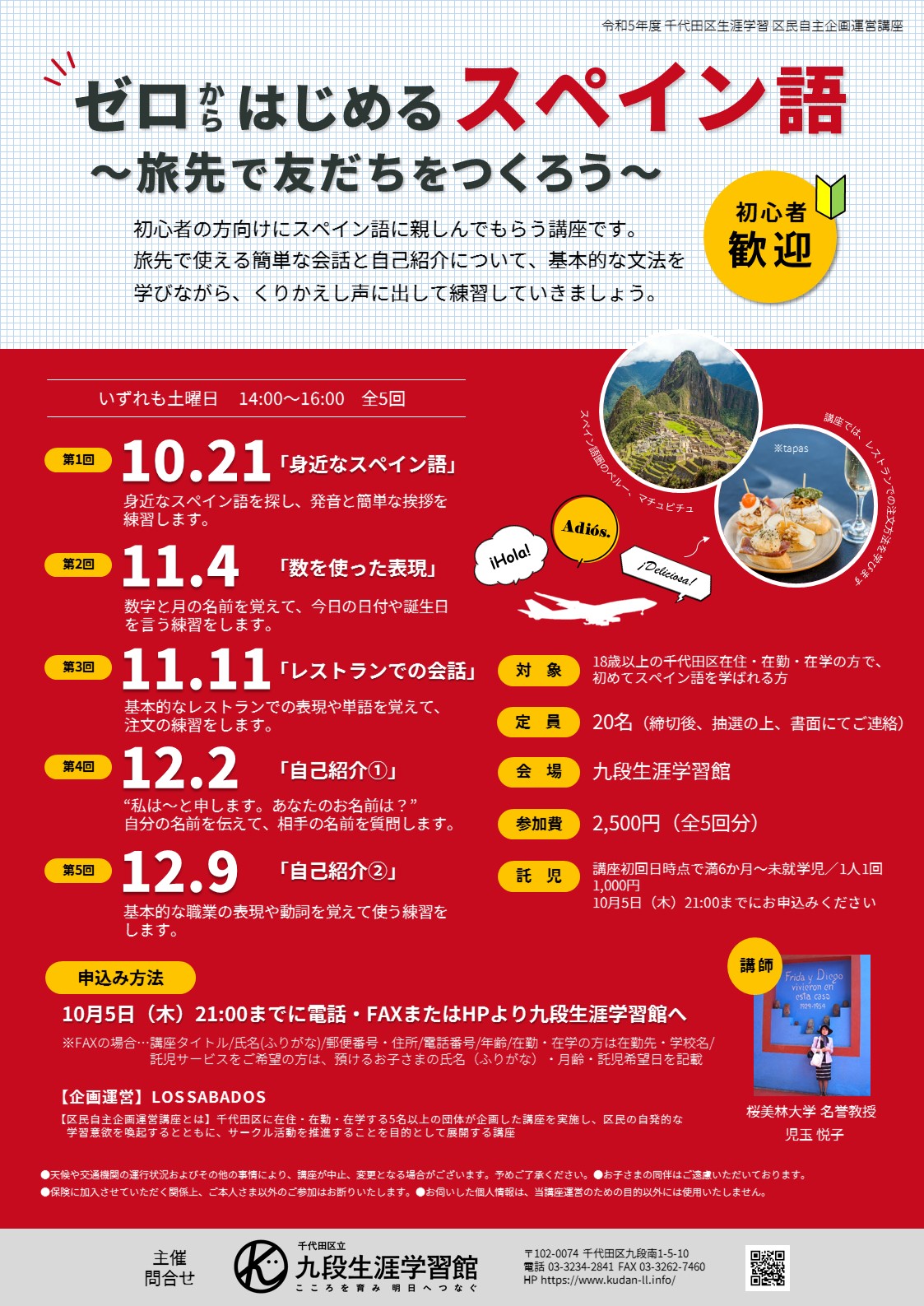 令和5年度 千代田区生涯学習 区民自主企画運営講座「ゼロからはじめるスペイン語~旅先で友だちをつくろう~」
