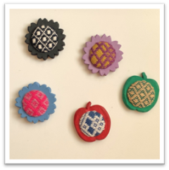 ④Let’s study「こぎん刺し」くるみボタンのブローチ