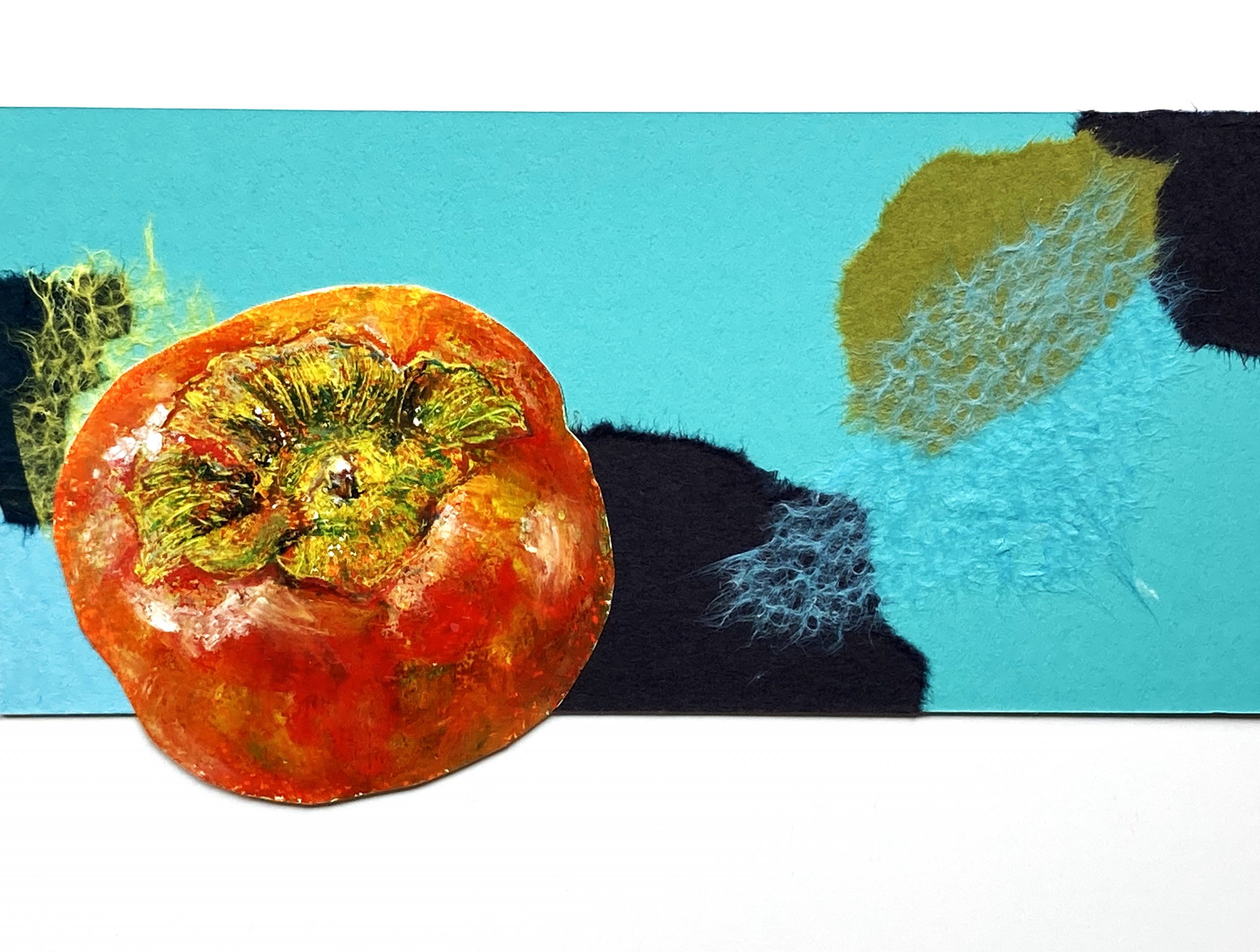 ①オイルパステルで描く抽象画②オイルパステルとアクリル絵具を重ねて描く柿③④極薄の和紙とワイヤーで作る立体的な鳥づくりにトライ。