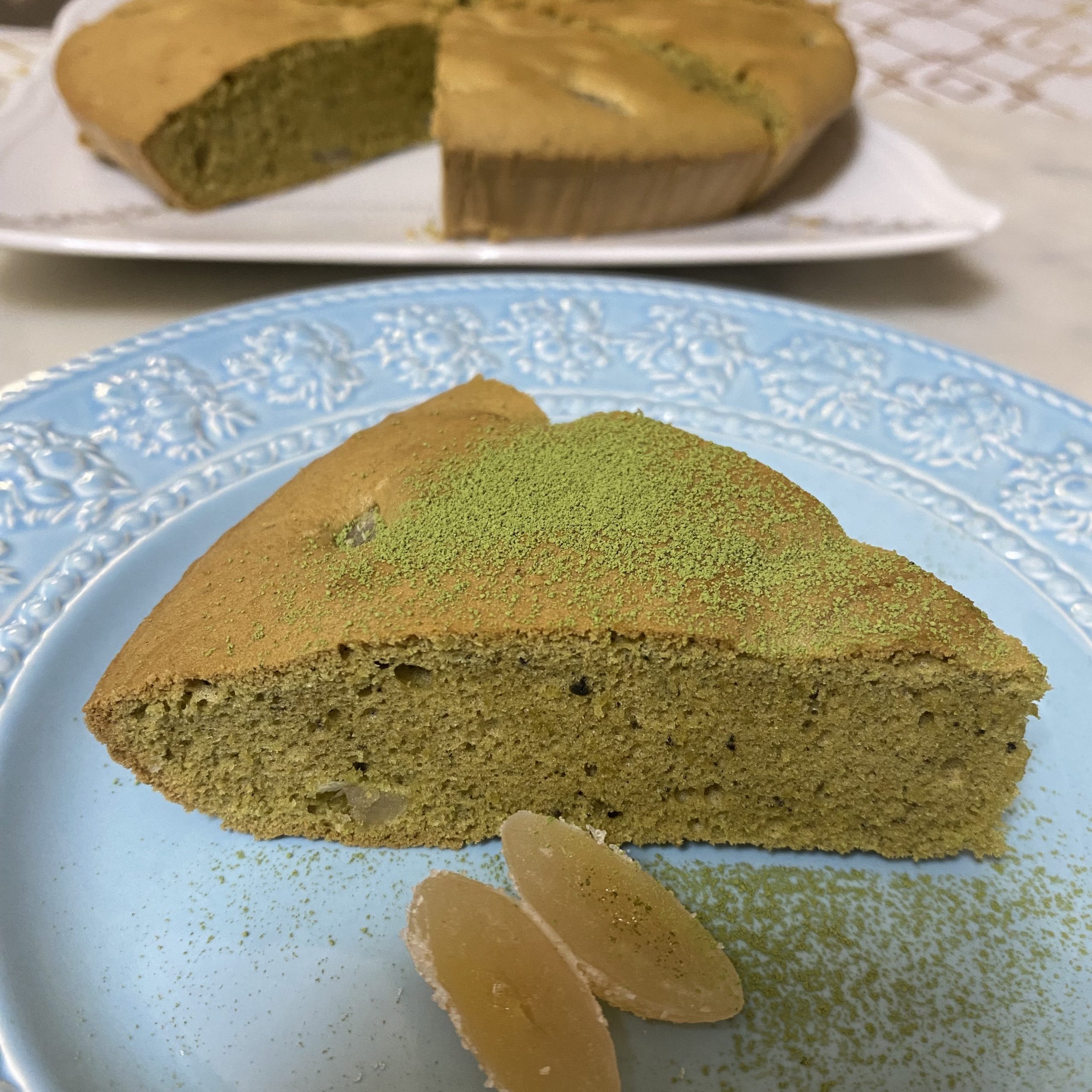 甘納豆が入った抹茶の風味豊かなしっとりケーキを作ります。(底直径18cm型使用)