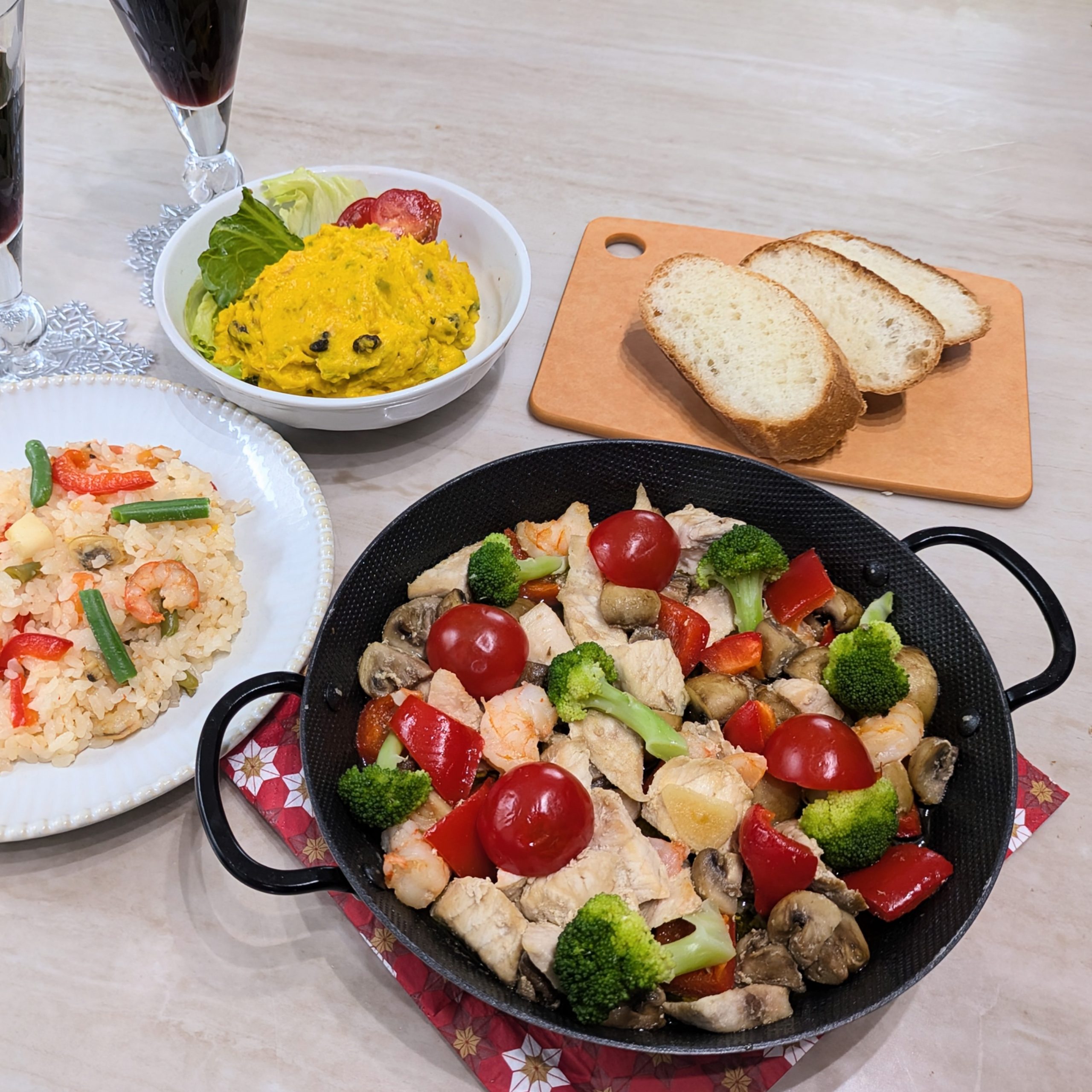 カラダづくりに大切なタンパク質。その働きや効果的な取り入れ方について学び、クリスマスの時期にもぴったりな簡単レシピのアヒージョ・カボチャサラダ・人参のマスタード和えを作ります。