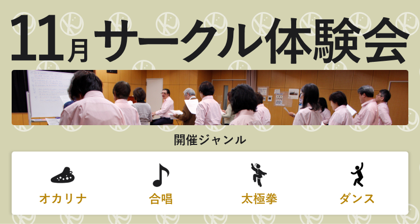 令和7年度 生涯学習団体1日公開講座事業「11月サークル体験会」