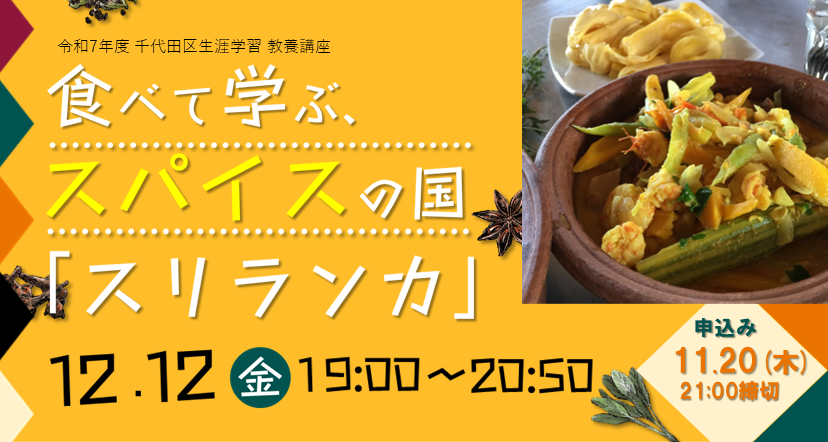 令和7年度 千代田区生涯学習 教養講座 食べて学ぶ、スパイスの国「スリランカ」