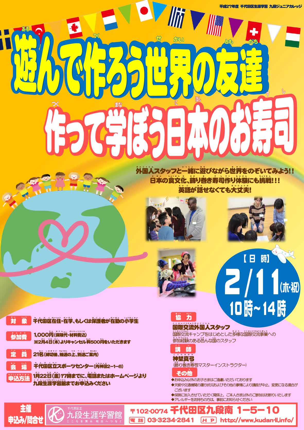 平成27年度 千代田区生涯学習 九段ジュニアカレッジ「遊んで作ろう世界の友達 作って学ぼう日本のお寿司」