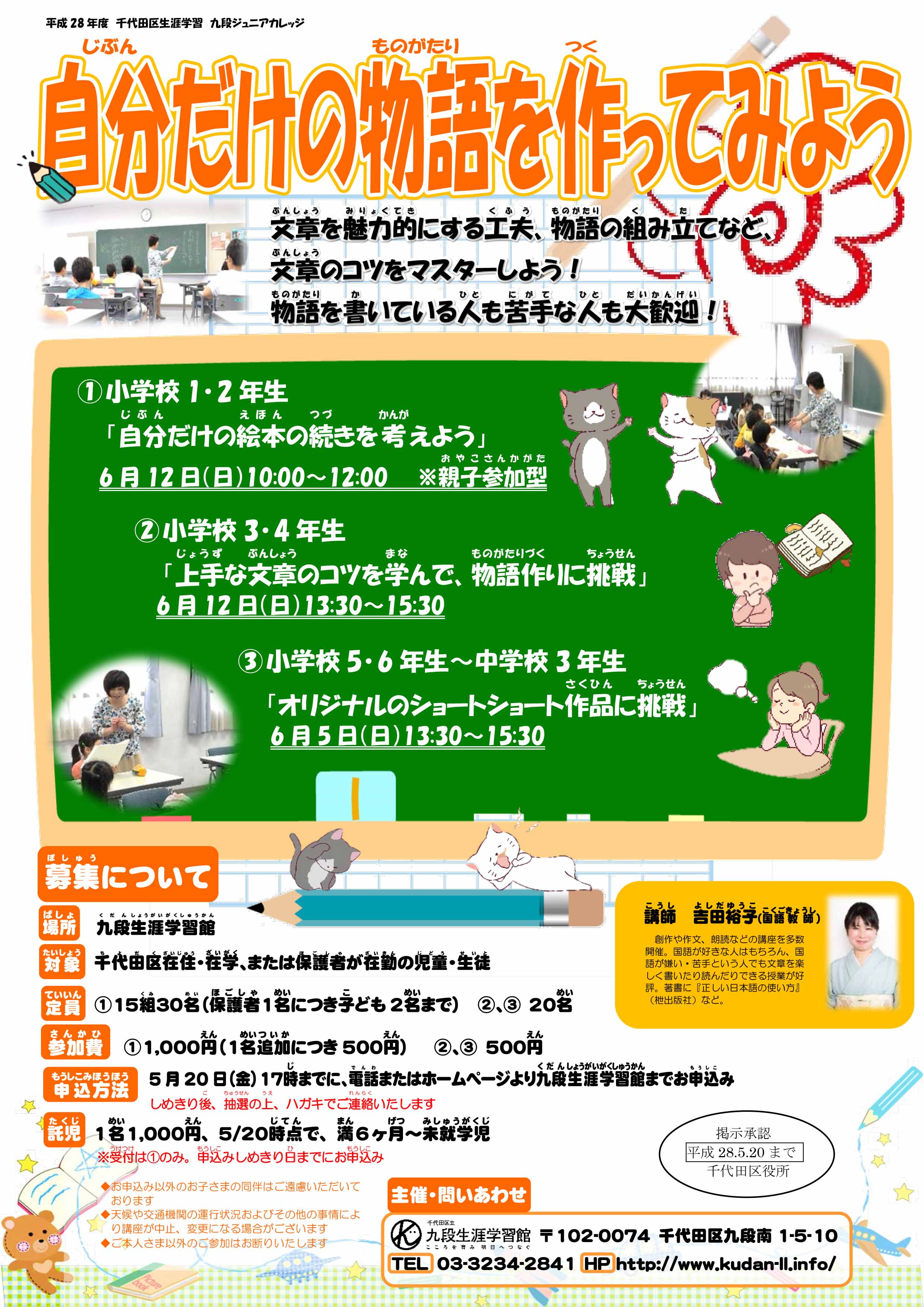 平成28年度 千代田区生涯学習 ジュニアカレッジ「自分だけの物語を作ってみよう」