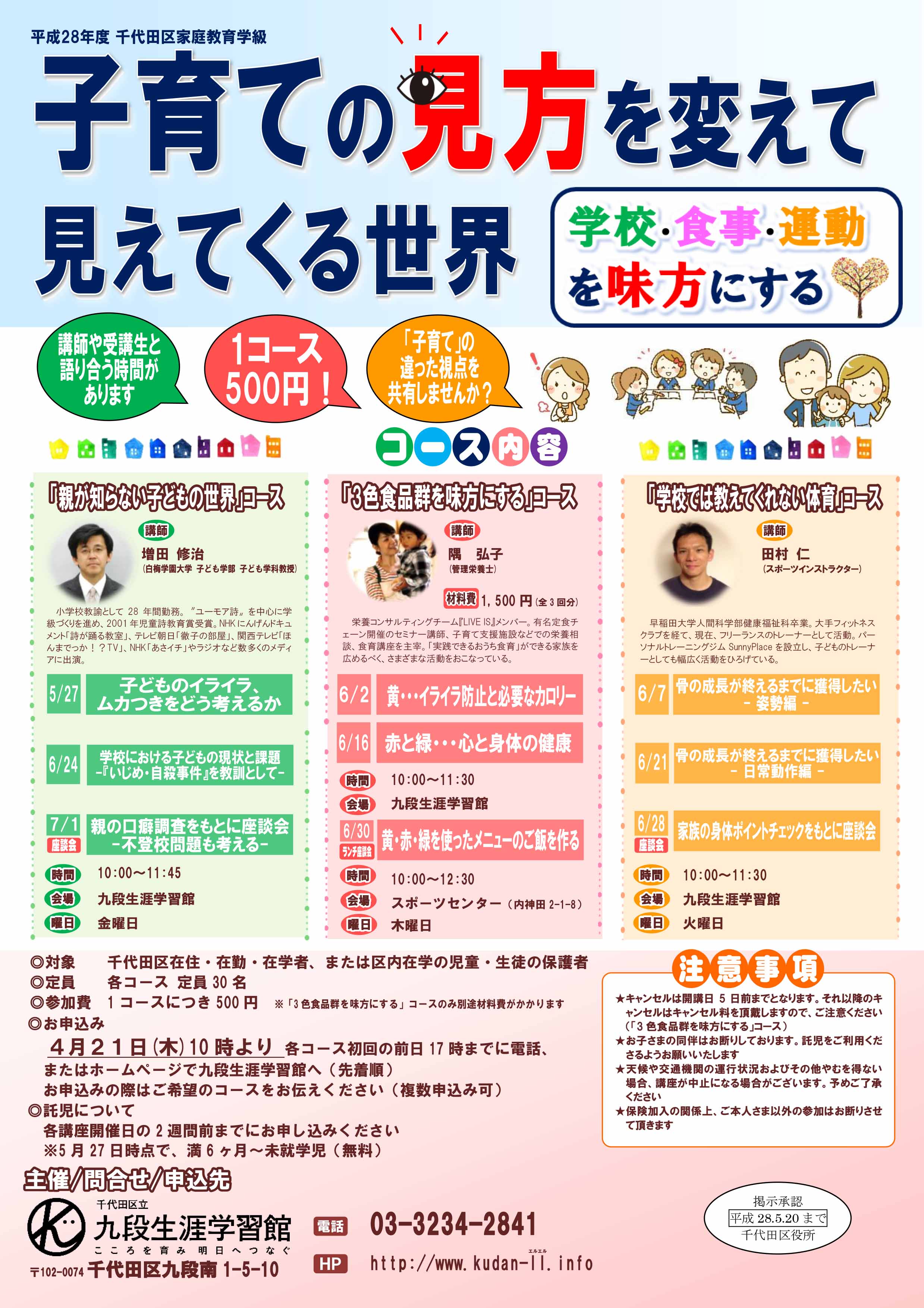 平成28年度 千代田区生涯学習 家庭教育学級「子育ての見方を変えて見えてくる世界 -学校・食事・運動を味方にする-」