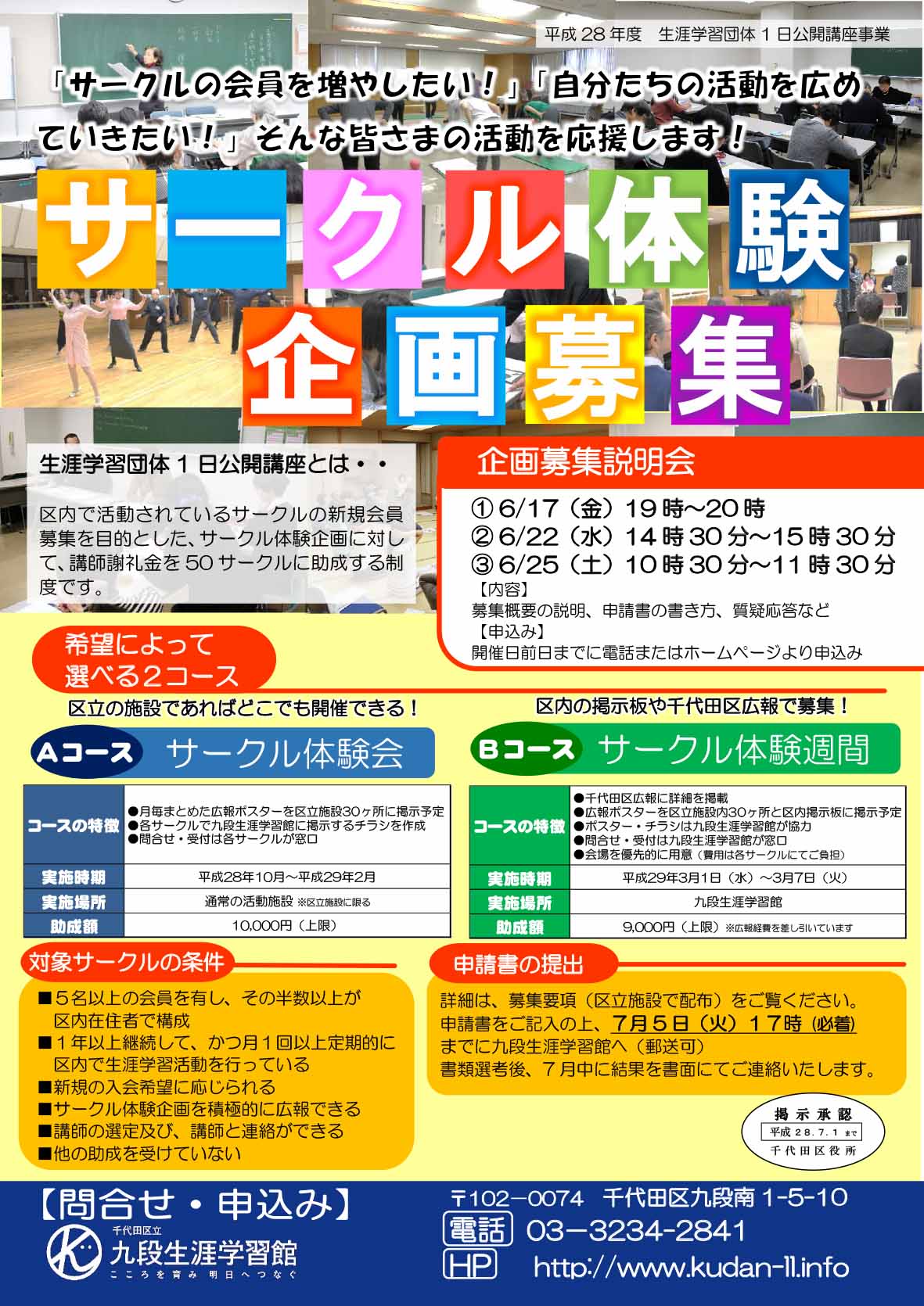 生涯学習団体1日公開講座「サークル体験企画」募集開始&説明会開催のお知らせ