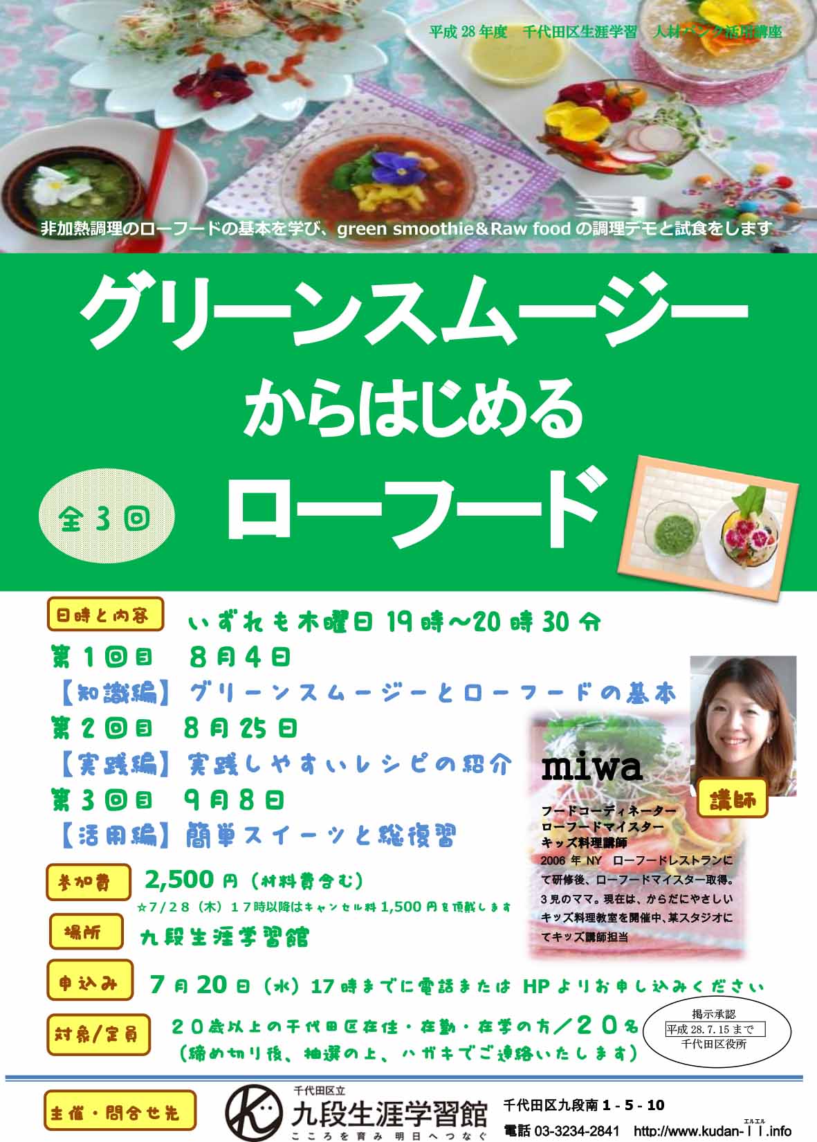 平成28年度 千代田区生涯学習 人材バンク活用講座「グリーンスムージーからはじめるローフード」