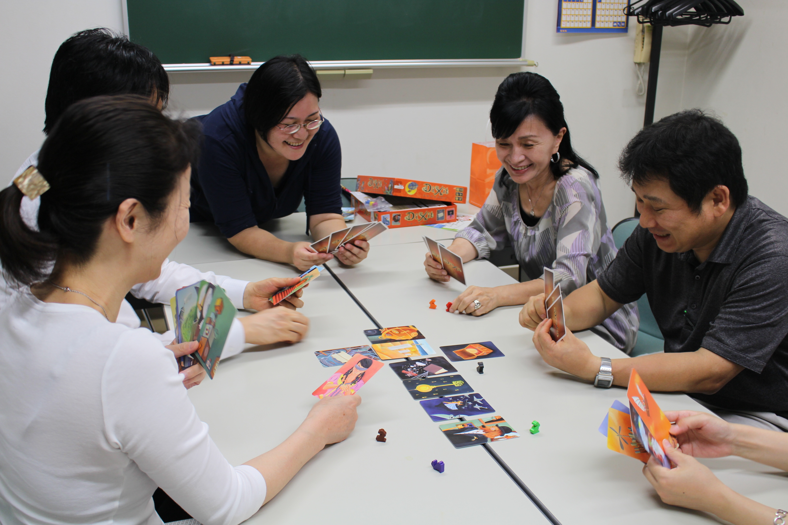 コミュニケーション力・想像力・表現力を伸ばす、サイコロやカード、ボードゲームを紹介し、実際にプレイします。