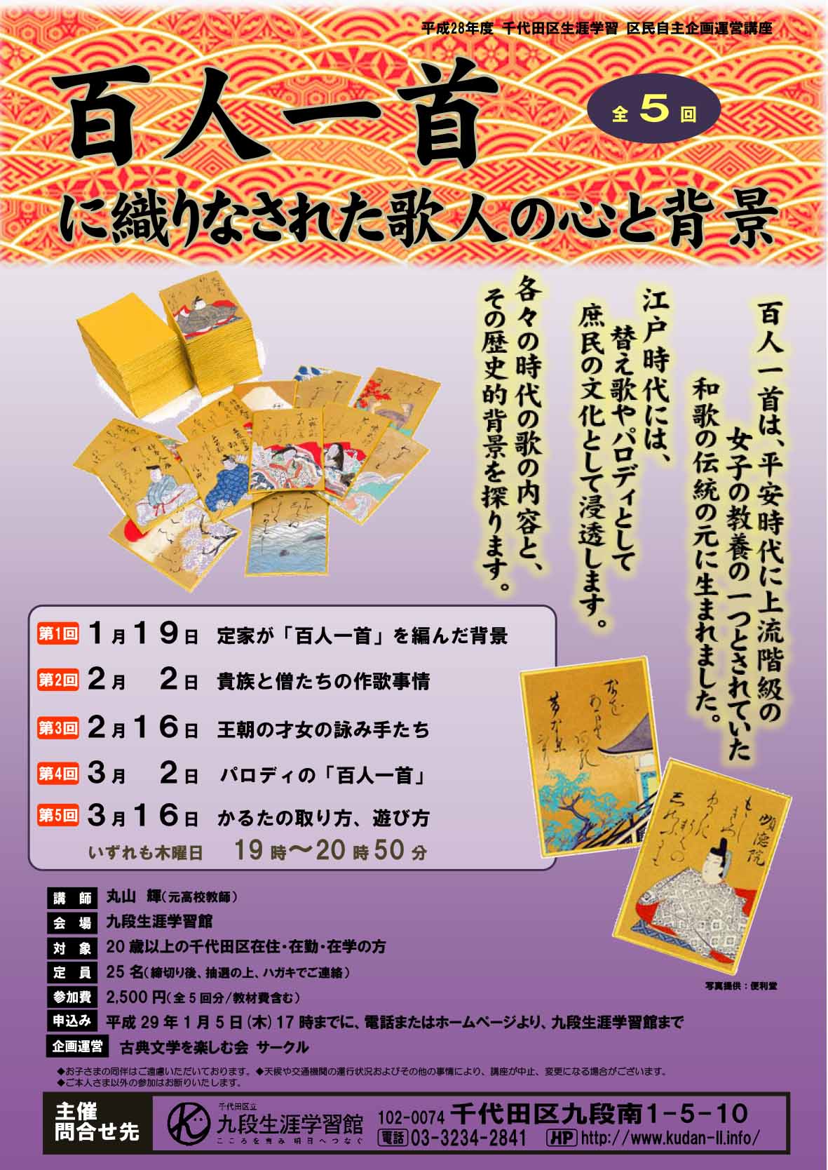 平成28年度 千代田区生涯学習 区民自主企画運営講座講座「百人一首に織りなされた歌人の心と背景」