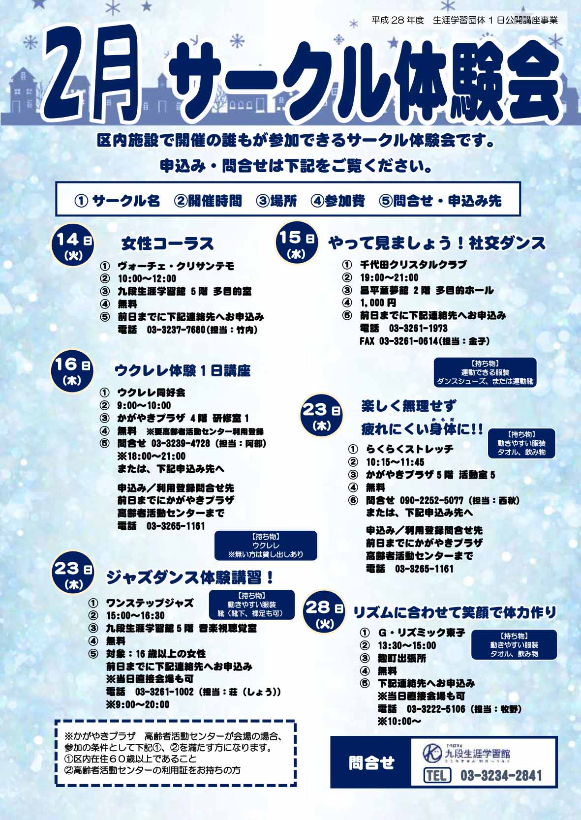 サークル体験会 平成29年2月参加者募集のお知らせ